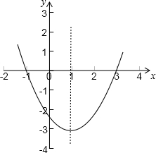∴与x轴交点坐标为:(-1,0),(3,0)