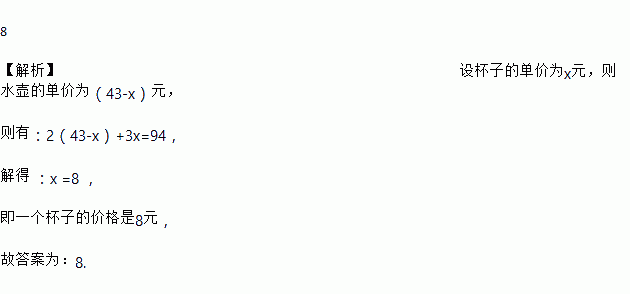 根据图中提供的信息,可知一个杯子的价格是________元.