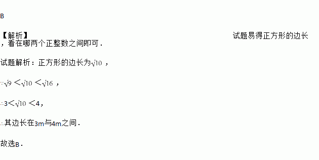 面积为10m2的正方形地毯,它的边长介于( )