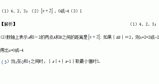 (2)数轴上表示x和-2的两点A和B之间的距离是 ,如果∣AB∣=2,那么x为 ;