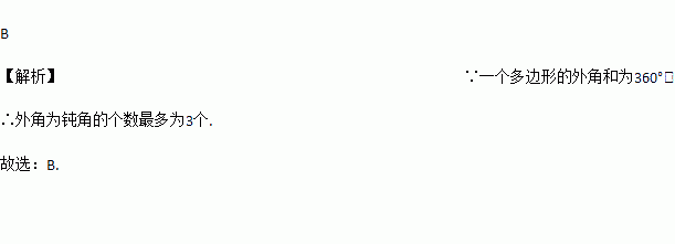 在一个边形的个外角中,钝角最多有( )
