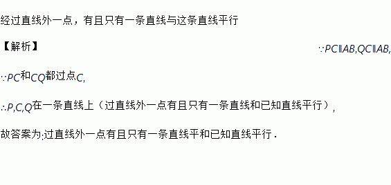 如图,PC∥AB,QC∥AB,则点P,C,Q在一条直线上.理由是____________________