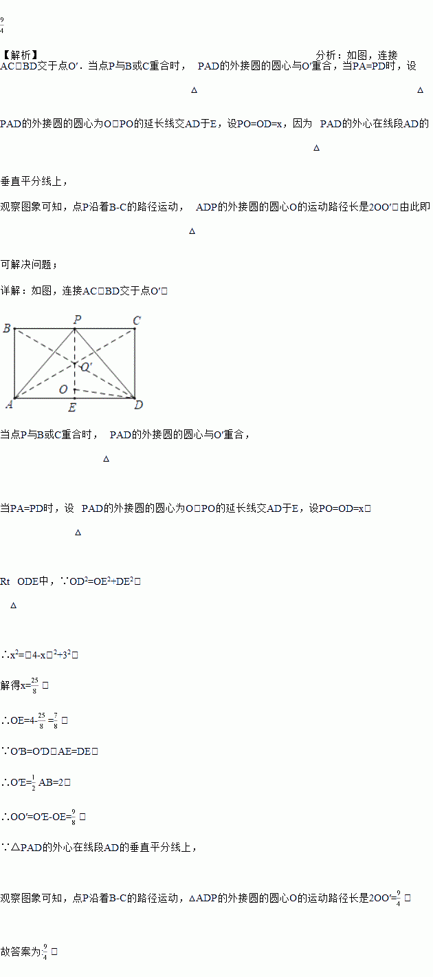在矩形ABCD中,AB=4,BC=6,动点P为矩形边上的一点,点P沿着B﹣C的路径运动(含点B和点C),则△ADP的外接圆的圆心O的运动路径长是_____.