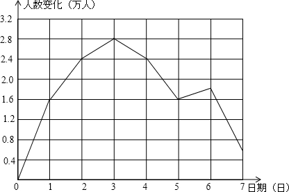 ¡°Ê®Ò»¡±»Æ½ðÖÜÆÚ¼ä£¬Ä³·ç¾°ÇøÔÚ7Ìì¼ÙÆÚÖÐÿÌìÂÃÓεÄÈËÊý±ä»¯Èç±í£¨ÕýÊý±íʾ±ÈǰһÌì¶àµÄÈËÊý£¬¸ºÊý±íʾ±ÈǰһÌìÉÙµÄÈËÊý£©¡¡¡¡ £¨ µ¥Î»£ºÍòÈË£©