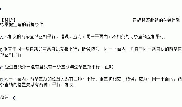 C. 经过直线外一点有且只有一条直线与这条直线平行