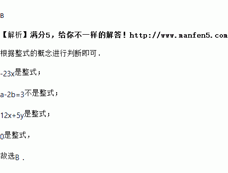 A. –23x B. a–2b=3 C. 12x+5y D. 0