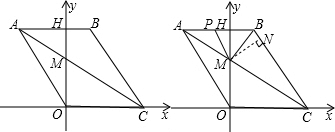 分析:(1)根据A的坐标求出AH、OH,根据勾股定理求出AO,再利用菱形的性质即可求出点C和点B的坐标;
