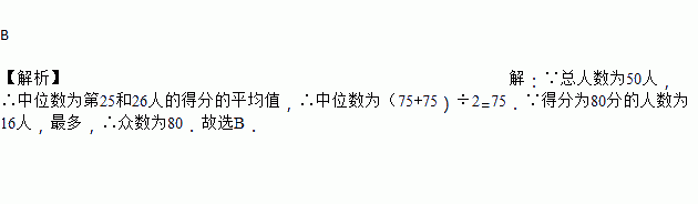 则这50名同学问卷得分的众数和中位数分别是 ( )
