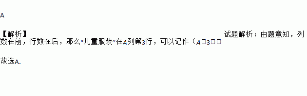 我们用以下表格来表示某超市的平面示意图.如果用(C,3)表示“体育用品”的位置,那么表示“儿童服装”的位置应记作( )