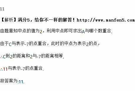 数轴上有分别表示—7与2的两点A、B,若将数轴沿点B对折,使点A与数轴上的另一点C重合,则点C表示的数为________.