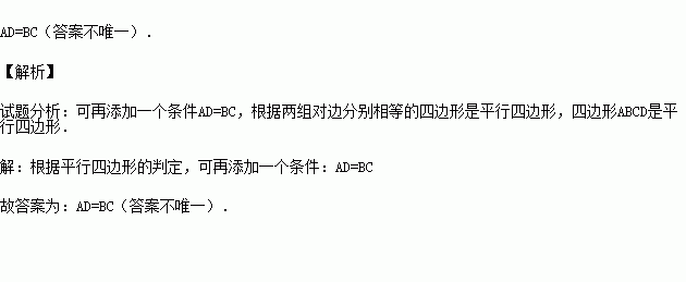 如图,在四边形ABCD中,已知AB=CD,再添加一个条件 (写出一个即可),则四边形ABCD是平行四边形.(图形中不再添加辅助线)