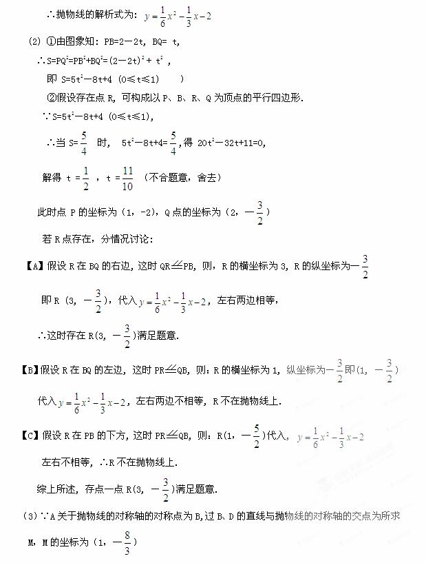 解: (1)据题意知: A(0, -2), B(2, -2) ,D(4,—