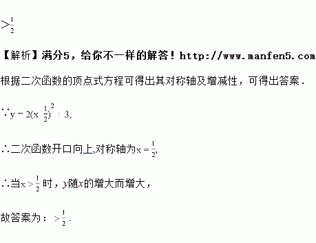 已知二次函数y=2(x-)2+3,当x________时,y随x的增大而增大.