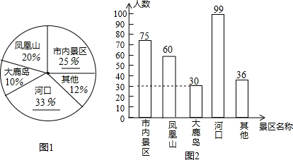 (2)根据百分比的意义求得首先凤凰山的人数以及选择河口以及市区景区的人数所占的百分比,即可补全统计图;