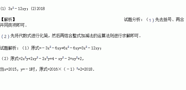 (1)化简:﹣3(x2+2xy)+6(x2﹣xy)
