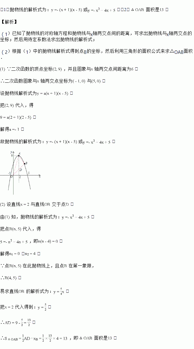 已知一抛物线的顶点的坐标是,并且抛物线与轴两交点间的距离为.
