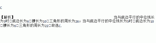 已知等腰三角形的两条中位线长分别为3和5,则此等腰三角形的周长为( )