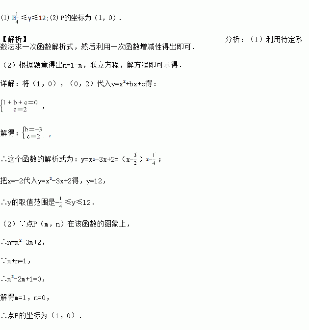 在平面直角坐标系中,二次函数y=x2+bx+c(b,c都是常数)的图象经过点(1,0)和(0,2).