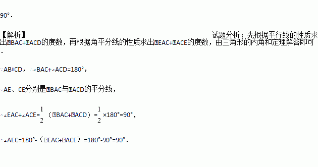 如图,已知AB∥CD,∠CAB、∠ACD平分线交于点E,则∠AEC的度数为_____°.