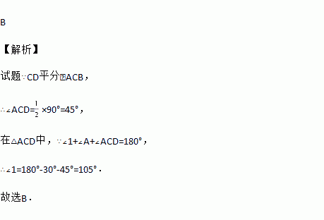 如果CD平分含30°三角板的∠ACB,则∠1等于( ).
