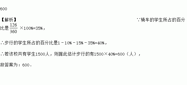 如图,某校根据学生上学方式的一次抽样调查结果,绘制出一个未完成的扇形统计图,若该校共有学生1500人,则据此估计步行的有_____.