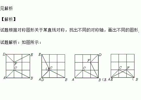 在的正方形格点图中,有格点和,且和关于某直线成轴对称,请在如图给出的图中画出4个这样的每个正方形个点图中限画一种,若两个图形中的对称轴是平行的,则视为一种