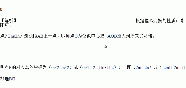 在平面直角坐标系中,点是线段上一点,以原点为位似中心把放大到原来的两倍,则点的对应点的坐标为( )