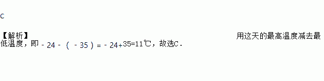 2018南1月24日是腊八节,这天哈尔滨市的最低气温是﹣35℃,最高气温是﹣24℃,这一天哈尔滨市的温差为( )