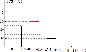 (4)若该学校有学生1260人,那么大约有多少学生在寒假做家务的时间在40.5~100.5小时之间?