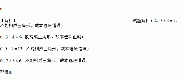 A. 3,4,7 B. 3,4,6 C. 5,7,12 D. 2,3,6