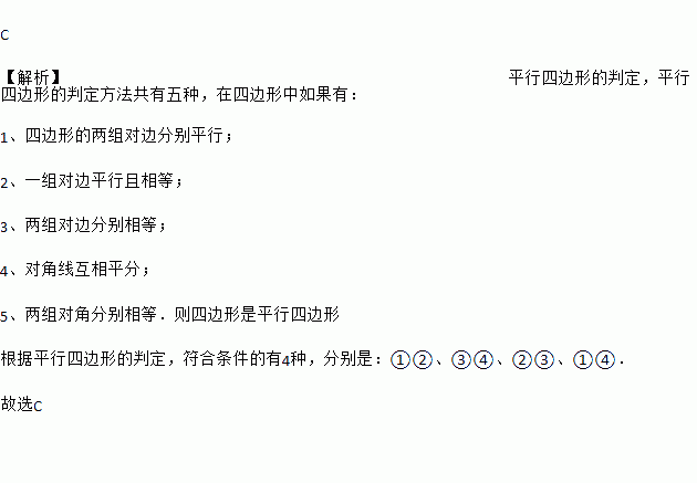 已知四边形,有以下四个条件:①;②;③;④.从这四个条件中任选两个,能使四边形成为平行四边形的选法种数共有( )