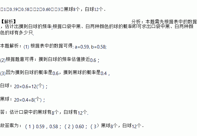 (3)试估算口袋中黑、白两种颜色的球各有多少只?