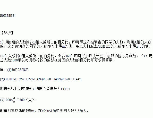 该校共有学生1000人,请估计每月零花钱的数额x在![]()