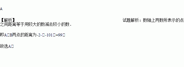 已知数轴上表示-2和-101的两个点分别为A,B,那么A,B两点间的距离等于( )