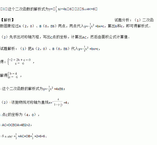(2)设该二次函数的对称轴与x轴交于点C,连接BA,BC,求△ABC的面积.