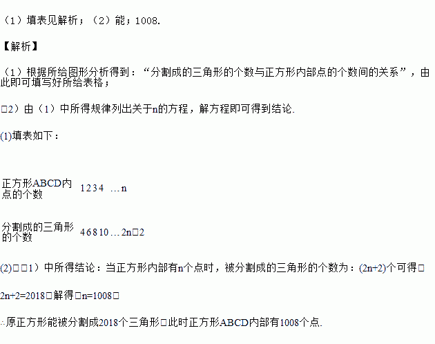 (2)原正方形能否被分割成2018个三角形?若能,求此时正方形ABCD内部有多少个点;若不能,请说明理由.