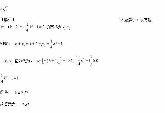 关于x的一元二次方程x2﹣(k+2)x+ k2﹣1=0的两根互为倒数,则k的值是________.