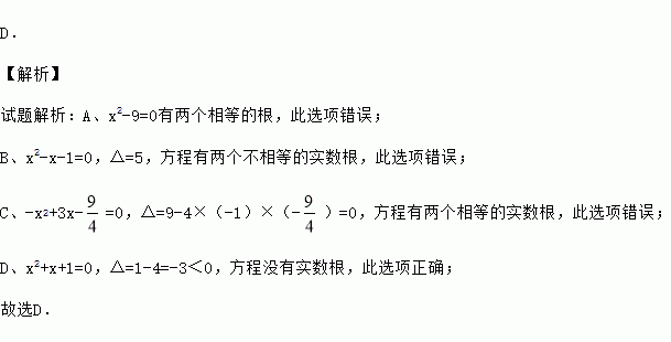 D.x2+x+1=0