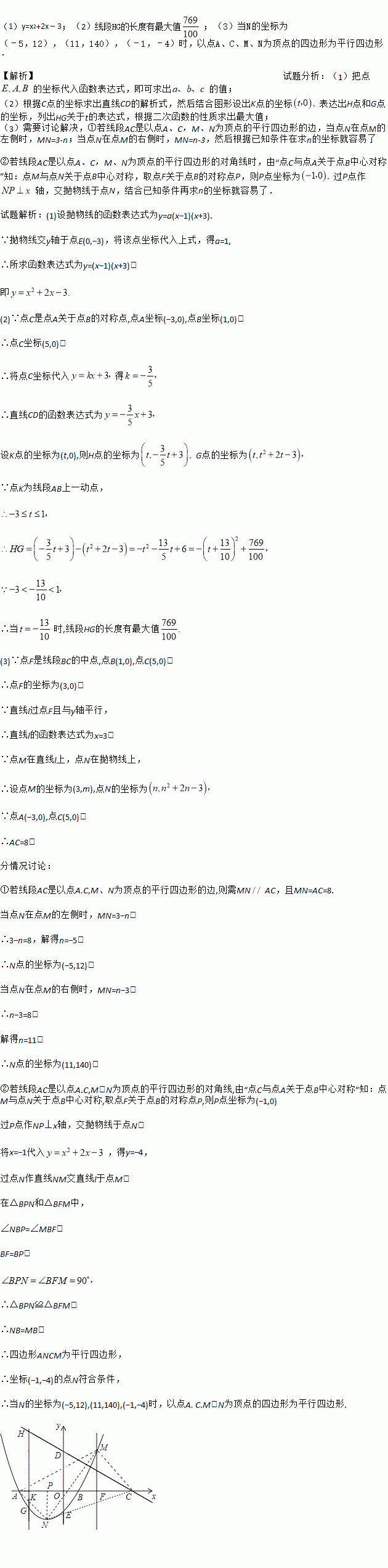 (2)点K为线段AB上一动点,过点K作x轴的垂线与直线CD交于点H,与抛物线交于点G,求线段HG长度的最大值;