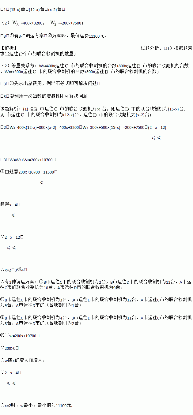 市分别有库存的某联合收割机10台和15台,现决定开往