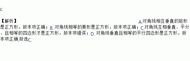 C. 对角线相互垂直且相等的四边形 D. 对角线垂直且相等的平行四边形