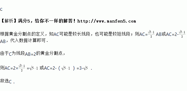 已知线段等于个单位长,是线段的黄金分割点,则的长度为( )