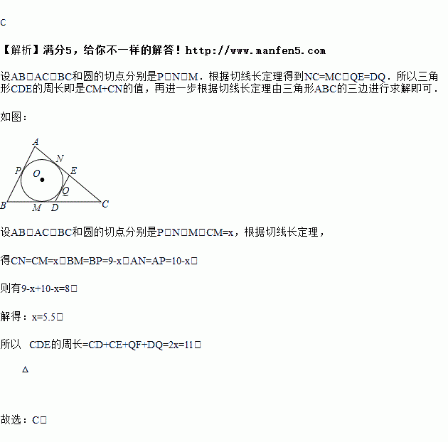 如图,为的内切圆,,,,点,分别为,上的点,且为的切线,则的周长为( )
