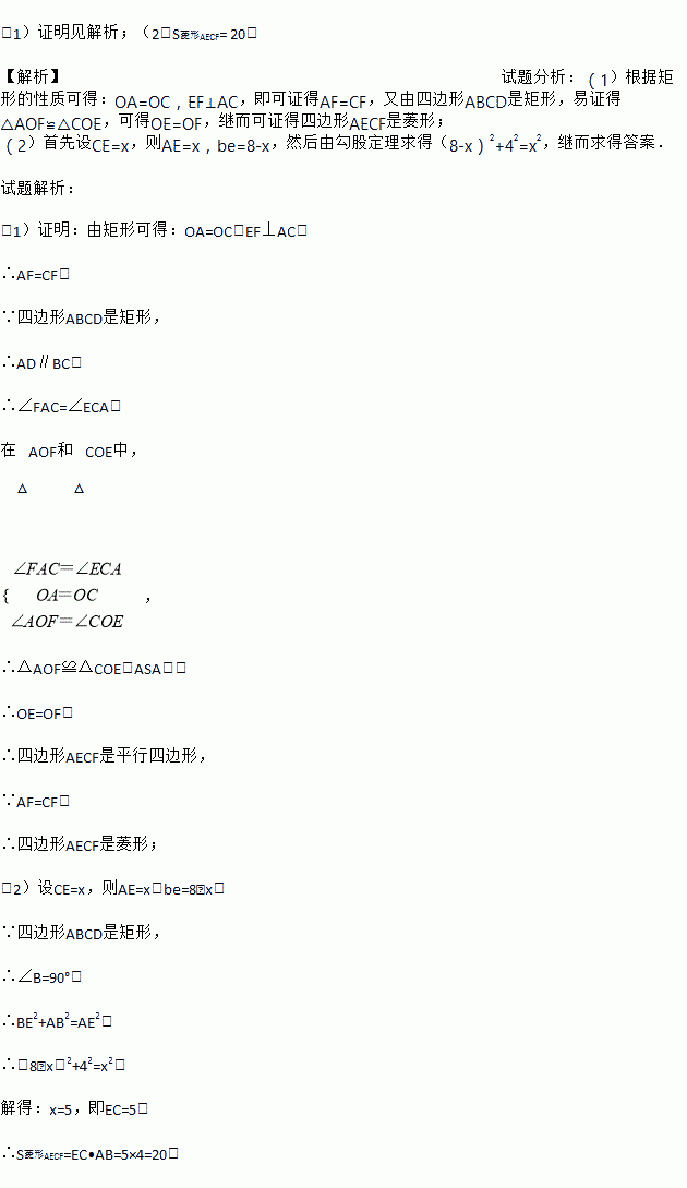 (2)已知AB=4,BC=8,求菱形AECF的面积.