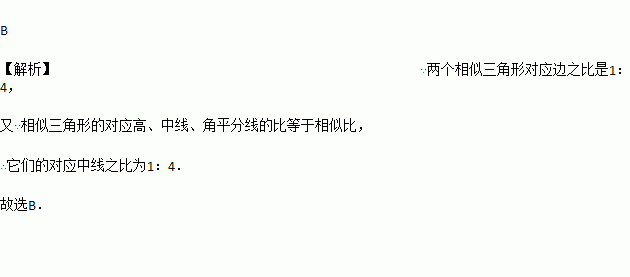 如果两个相似三角形对应边之比是1︰4,那么它们的对应中线之比是( )