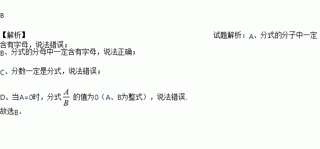 A. 分式的分子中一定含有字母