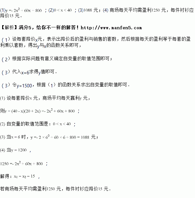 元,为了扩大销量,增加盈利,商场决定采取适当的降价措施,经调查发现,在一定范围内,衬衫的单价每降![]()
