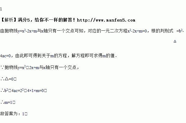 抛物线y=x2﹣2x+m与x轴只有一个交点,则m的值为_____.