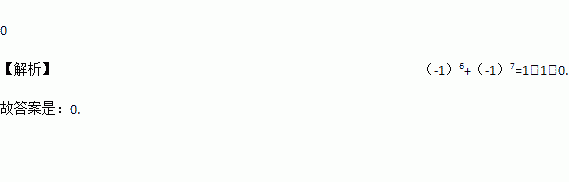 计算:(-1)6+(-1)7=____________。