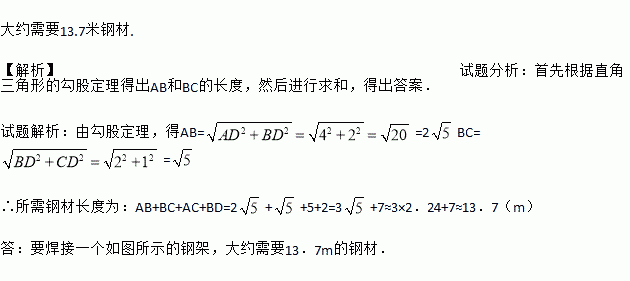 要焊接如图所示的钢架,大约需要多少米钢材(精确到0.1m)?
